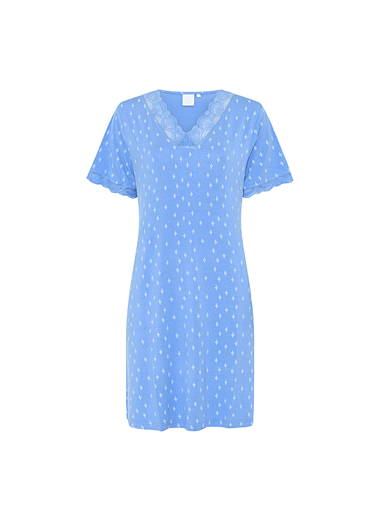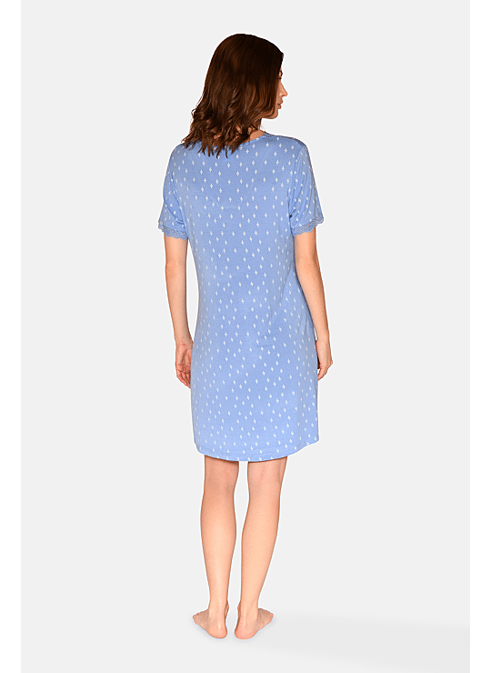 Jacqueline is een lichte en comfortabele jurk met korte mouwen en een eenvoudige snit die zachtjes het lichaam volgt. Ideaal voor rustige ochtenden en ontspannen momenten.