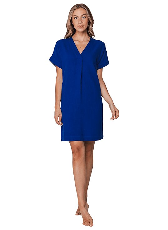 Dit mooie beach jurkje uit de serie Cobalt Sea van Pastunette is een stijlvolle en comfortabele keuze voor warme zomerdagen. De jurk is uitgevoerd in een krachtige, uni blauwe kleur die zorgt voor een frisse en tijdloze uitstraling.