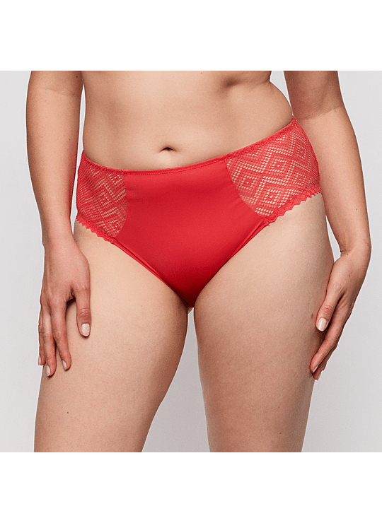 Minimalistisch met kant - en een zalige pasvorm.Hoge tailleslip voor een cool retrosilhouet.In een warme koraalrode tint