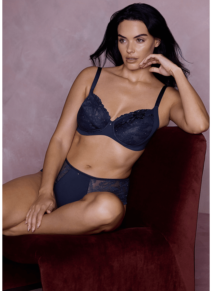 Comfort ontmoet glamour met Most Divine's Classic Beugel BH, nu verkrijgbaar in een onweerstaanbare donker saffierblauwe tint. Deze prachtige collectie benadrukt schoonheid in de fijnere details en bevat luxueuze micropailletten die door het zachte, rekbare kant zijn geweven, voor een subtiele, glinsterende finish. Dit klassieke montuur zorgt voor uitzonderlijk comfort en vormgeving met luxe kanten cups, gevoerd met zacht stretchmesh en een discrete microvezel draagband voor de hele dag ondersteuning.